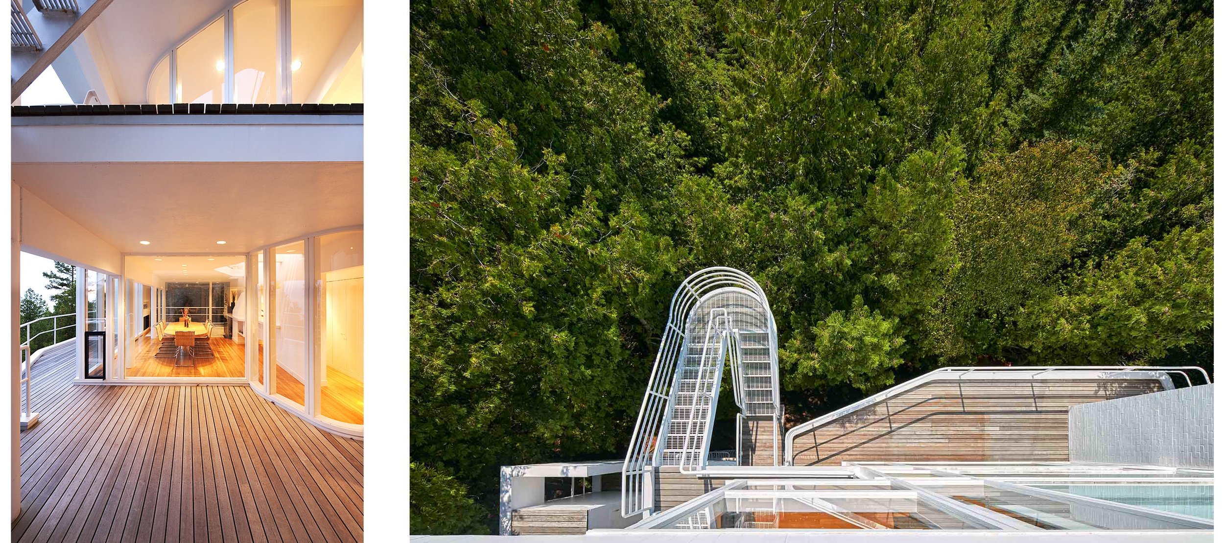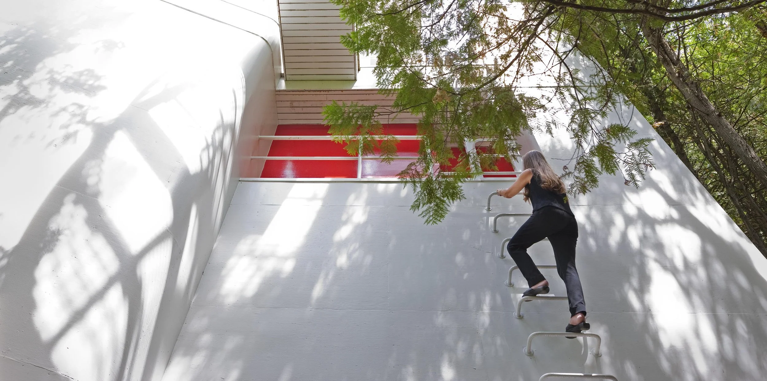 More conventionally, Meier designed two sets of stairs – one for the interior and another for the exterior. They were part of his overall design concept – an exploration of interior and exterior spaces. And as he notes, they’re design details that are part and parcel of the house itself.